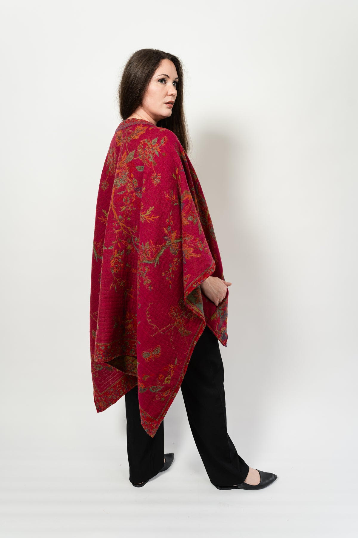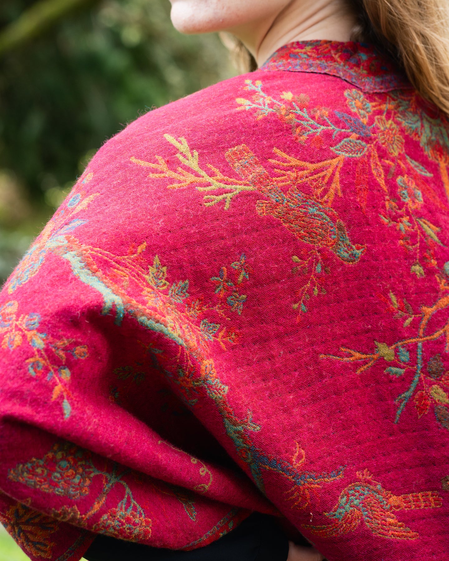 Pure Australian Merino Wool Cape ~ Fuchsia Bird